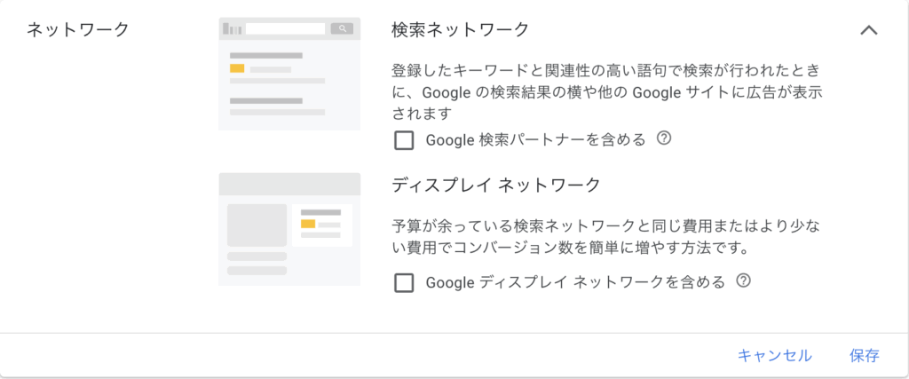 初めてGoogle広告を設定する方への注意点【初心者向けガイド】 / ノウハウ Google広告は誰でも始められる。しかし、初心者トラップがある! Google広告は中小企業や個人店舗でも始めやすいWEB広告です。初めての方向けには、広告費用のキャッシュバック特典も魅力的です。初始め方も簡単で、管理画面の案内に沿って広告設定ができます(スマート広告)。しかし、これは残念ながら初心者トラップです。**初期設定を細かく設定しないと「クリックはされているようだけど、効果が実感できない」**という事態になります。この記事では、当社への相談が多いGoogle広告初心者が失敗しないための5つの注意点を紹介します。必ず設定を見返して無駄費用を無くしましょう。 注意点①「スマート広告」ではなく「エキスパートモード」へ切り替え 初期設定では自動的に「スマート広告」を選択できますが、必ず「エキスパートモード」で始める設定に切り替えましょう。理由は後述します。スマート広告は操作は簡単ですが、配信のコントロールができないため、意図した内容で広告が表示されません。しかし、スマート広告にするとクリック数は稼げます。これは貴社が広告を届けたいユーザーとは関係のない、誰も入札しないような安い広告クリックを集めているからです。 注意点② ターゲット地域と時間帯の設定 配信対象エリアが貴社の商圏以外(全国など)になっていると、それは無駄なクリック地元の来店型ビジネスなら、「市町村」単位でエリア指定が必須特に店舗型ビジネスは、営業時間外の配信は除外したほうがよい。(例:夜中に広告表示)必ずエキスパートモードにして、上記の設定を貴社ビジネス商圏に合わせて設定をしましょう。 ※必ずエキスパートモードに画面を切り替えた上で。管理画面の左側、オーディエンス、キーワード、コンテンツの中、「地域」「広告のスケジュール」から設定可能です。 注意点③ キーワードの選定が甘いとムダが増える 例えば、貴社がパーソナルジムを経営しているとします。単純にGoogleで「パーソナルジム」と検索された際に、御社広告が表示されるようにしたいとします。ちなみに、実際に「パーソナルジム」と検索してみてください。 ・・・・いや、茨城から通えないよ! 時期によって表示される広告は異なりますが、恐らくこのような広告が表示されると思います。原因は前述の「地域設定」をしていないからですが、ここであなたは気づくはずです。ユーザーの気持ちで考えれば、仕事帰りや休日に通えるジムを探したいと。するとキーワード設定は「パーソナルジム+地域名」が良いと考えつきます。(例:「パーソナルジム 阿見」「パーソナルジム 牛久 」「パーソナルジム 土浦 」など ここで決して「ダイエット」などで出稿してはいけません。ユーザーがジムに通う目的はダイエットやボディメイクなんだから、「ダイエット」で出稿しようというのは悪魔の囁きです。なぜなら、「ダイエット」と検索する人は、「方法を知りたい(情報収集)」かも知れません。楽して痩せる方法や食事方法かも知れません。ダイエットサプリや健康食品等の「商品・サービスを探している」も考えられます。他にも複数の検索ニーズが想定できますが、「パーソナルジム」というキーワードと比べるとユーザー検索ニーズが遠いです。そのため、「ダイエット」などでキーワードを選定すると、貴社ビジネスと関係のない人へ広告が表示される可能性が高くなり、無駄費用が増えます。 注意点④ ディスプレイ広告と検索パートナーはOFF 必ず上記は設定しましょう。この設定をしないとGoogle検索窓で検索した以外の場所で、広告が表示されるようになってしまうため、意図したキーワードでの広告表示より、この検索パートナーやディスプレイで広告予算が利用されてしまいます。これがクリック数だけは獲得できて、ビジネス成果には繋がらない仕組みの大きな要因です。さらにたちが悪いのは、Google管理画面の最適化案で上記は設定しましょうと案内が出てくる点です。Google広告は非常に優秀なツールですが、この点だけは従わないでください。設定方法:キャンペーン右に表示されている歯車アイコンをクリック>設定画面が表示項目から、「ネットワーク」をクリック。上記の画面が表示されるため、チェックを外す。※事例:検索パートナーはOFFを推奨 このデータは、当社へご依頼いただく前のお客様の実データです。1ヶ月間のデータなのですが、クリック数が6,056、コンバージョン(問い合わせフォーム送信)が946あると言う驚くべきデータです。しかしながら、もちろんお客様はこの成果を実感しておりません。そこで当社の方で調べてみると、検索パートナー経由でほぼ予算が利用されていることが分かりました。では、検索パートナーとは一体何なのか?を説明しようとするとGoogleさん批判になってしまうため、黙ってOFFを推奨いたします。 注意点⑤ 成果を測る「コンバージョン